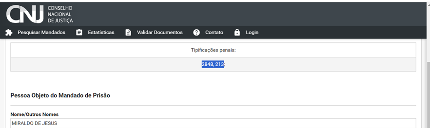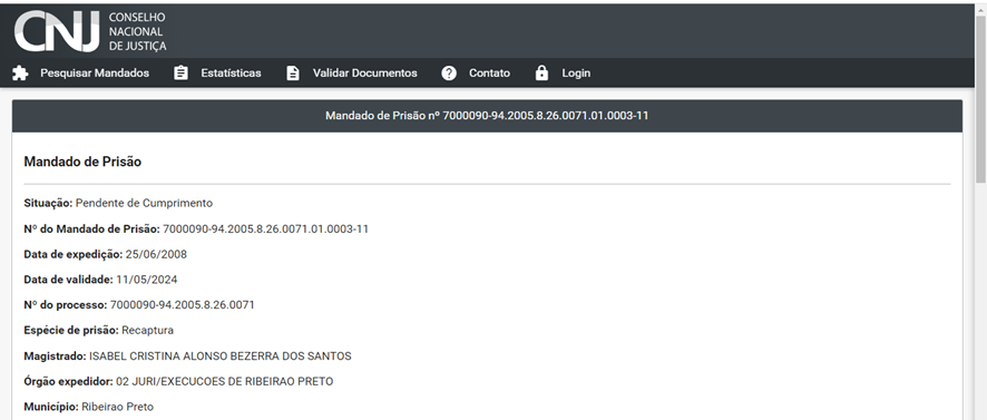 Segundo as informações do site do Conselho Nacional de justiça, o mandado foi expedido pelo 2° Juri de Execuções Penais da cidade de Ribeirão Preto em São Paulo por crime de estupro baseado no Decreto-lei 2.848 artigo 213 do código penal com reclusão de 15 anos em regime fechado.
