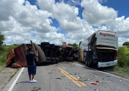 As causas do acidente ainda serão apuradas pela PRF, mas testemunhas disseram que a carreta atingiu a parte lateral do coletivo. Em seguida, o caminhão tombou.