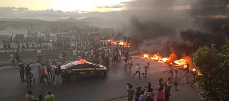 Uma grande manifestação travou o trânsito na BR-116 Norte em Santa Bárbara na tarde desta segunda-feira, 15. Populares queimaram pneus nos dois sentidos da rodovia.